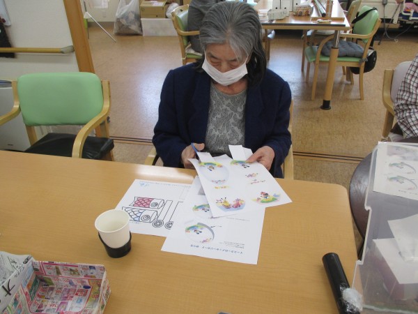 吊るし飾り。きれいにできました。「玄関に飾るわー」「居間がいいかしら」と嬉しそうに話していました。