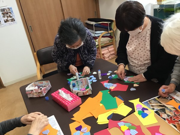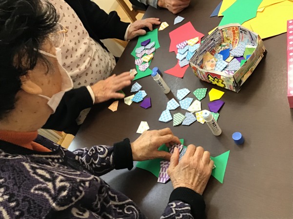 ハサミを使い折り紙で折る作業は手先の運動にもなります。