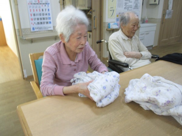 毎日の洗濯物たたみは、ご入居者様にお願いしています。