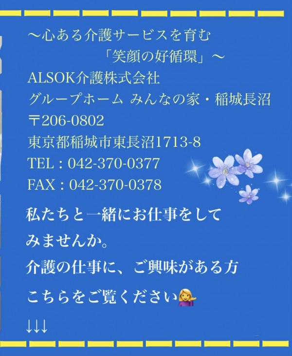 グループホームみんなの家・稲城長沼です。