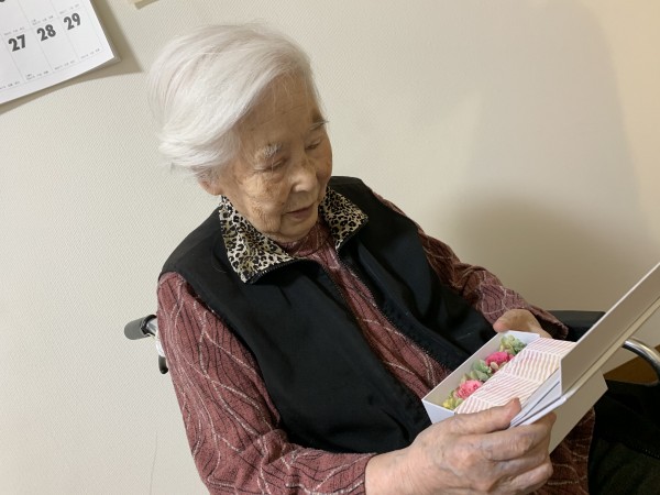 プレゼントを広げて、嬉しそうに見ていらっしゃいます。