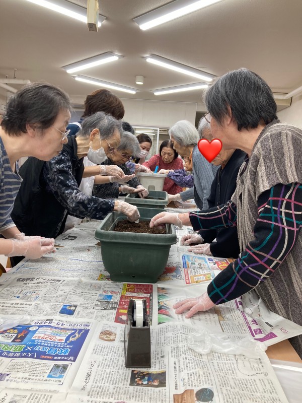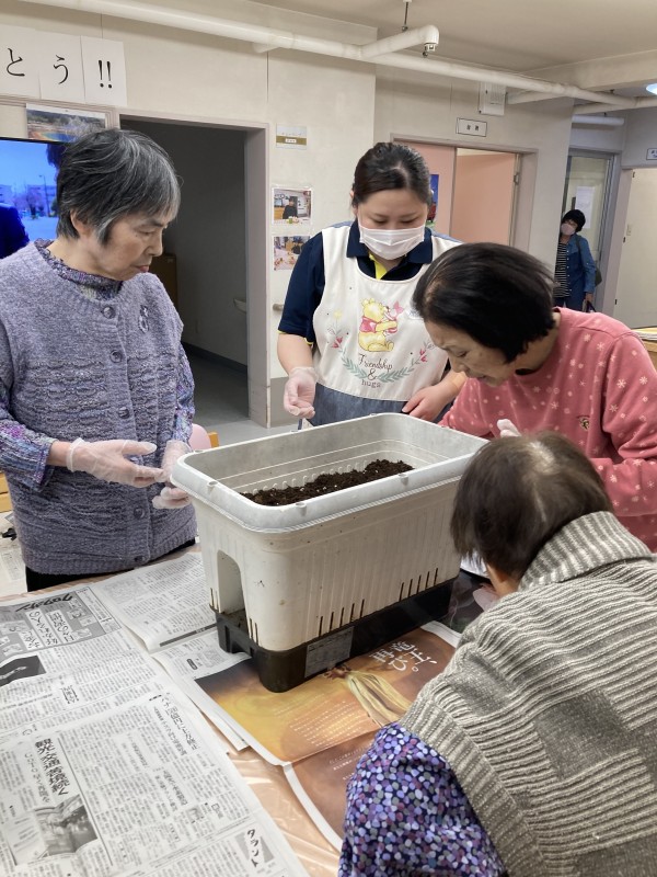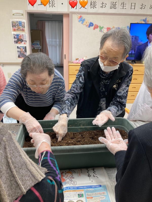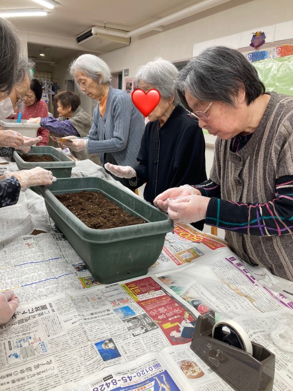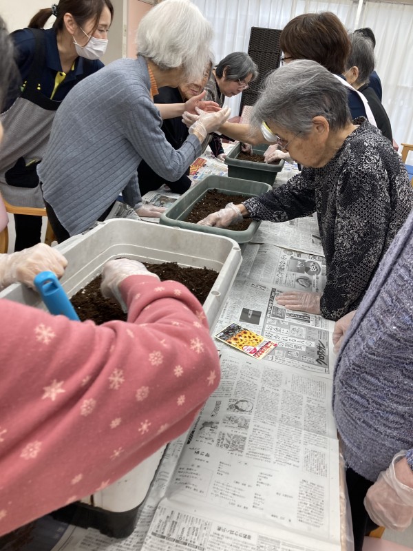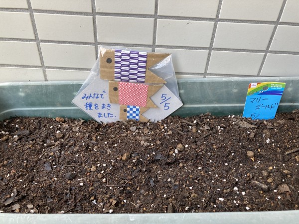 この日はみんなでヒマワリとマリーゴールドの種まきを行いました!