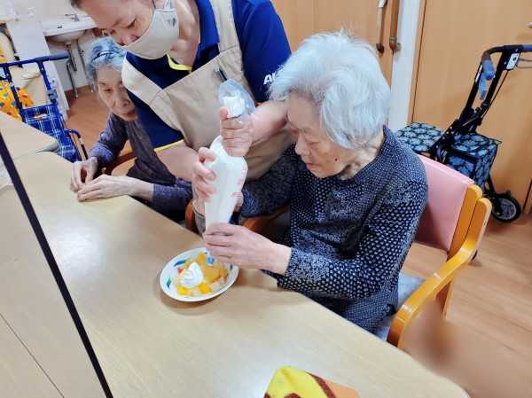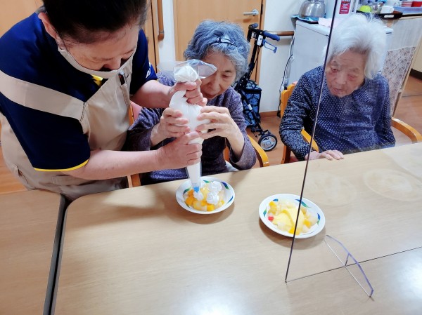 久地のお母様方にトッピングをお手伝いしていただきました。