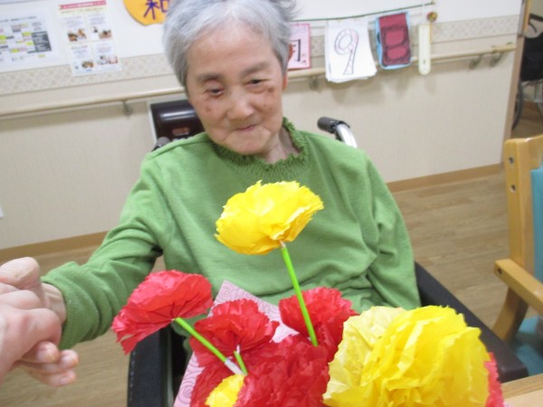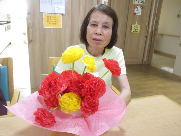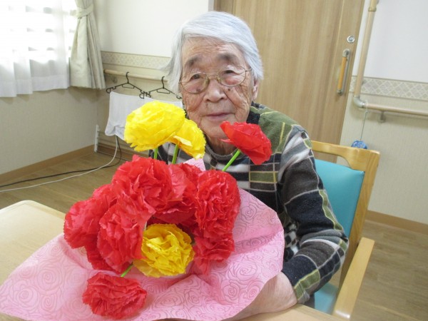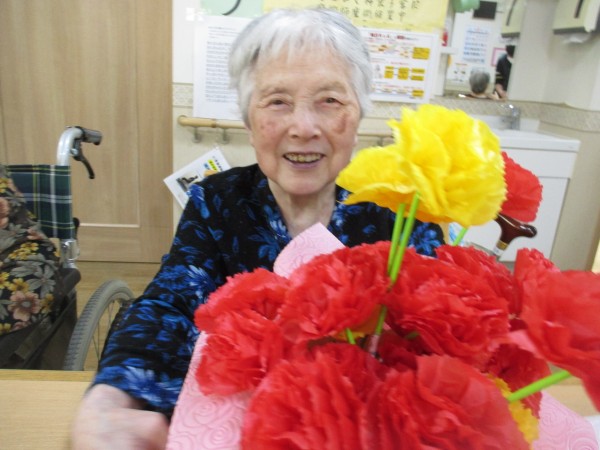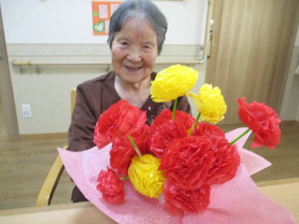 2階のご入居者様も手作りカーネーションと記念撮影しました。