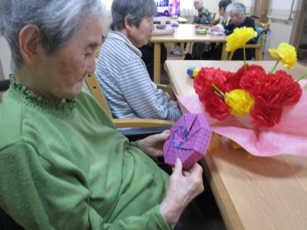 いつも静かなご入居者様も箱を見て「きれいね」とお話しされていました。
