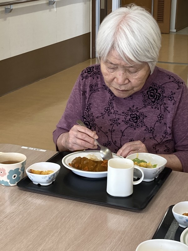 お昼はハンバーグカレー、苺のロールケーキ等特別メニューでした(^o^)丿