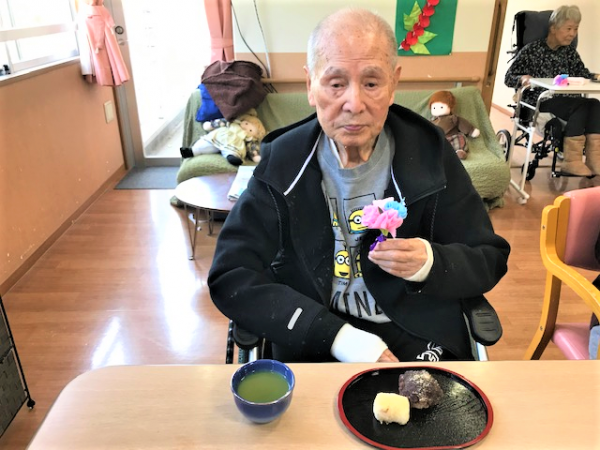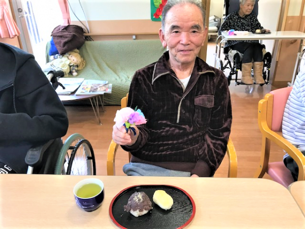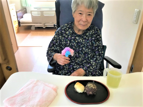 職員から頂いた手作りカーネーションも大切にお部屋に飾られてますよ。