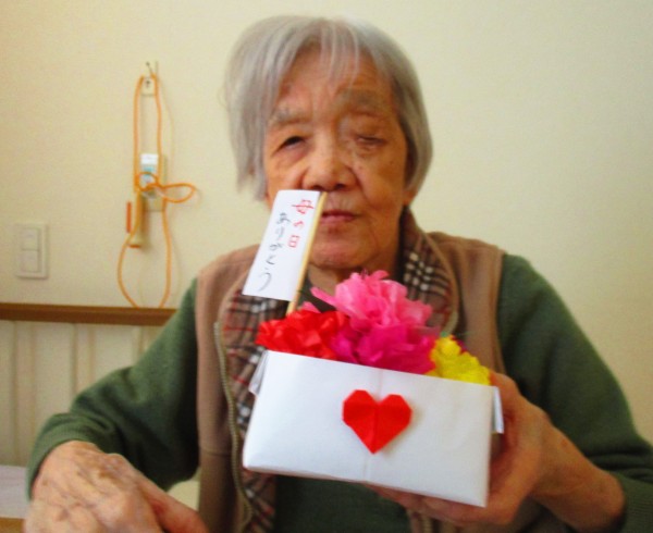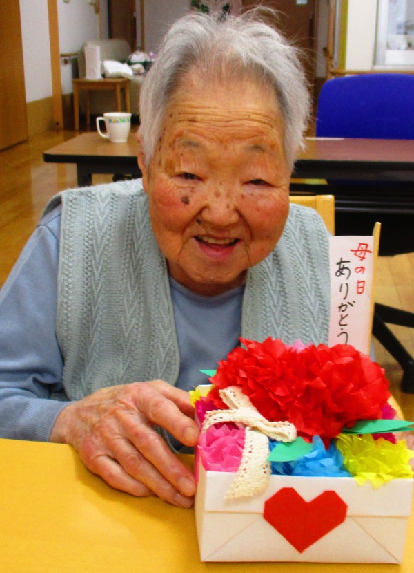 そんな介護付有料老人ホームみんなの家・南中野の【母の日】には女性のご入居者様へ感謝の気持ちをお届けしております(*ノωノ)