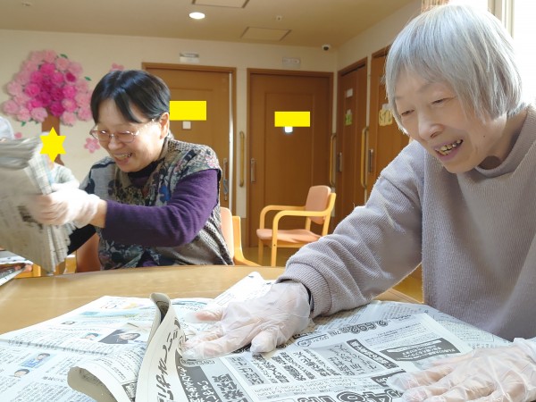 毎日何かと新聞を使うので、今回3階の皆さんが新聞をたたんでくださいました(人*´∀`)。*゚+