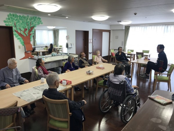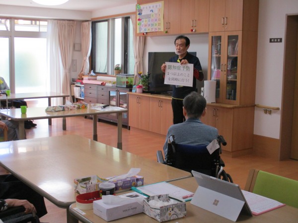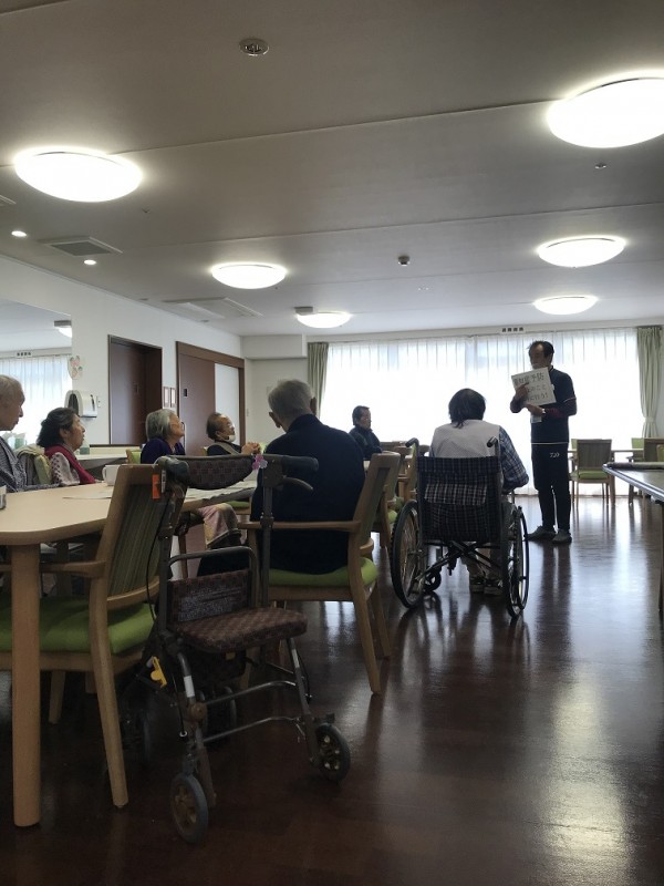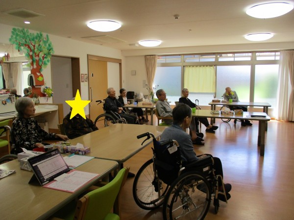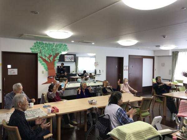 大きく腕をあげて岡田先生のもと体を動かしている入居者様をみてスタッフとても驚きました!!