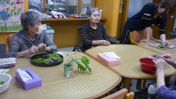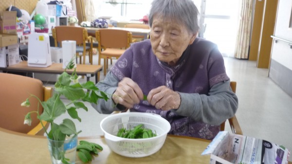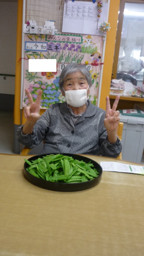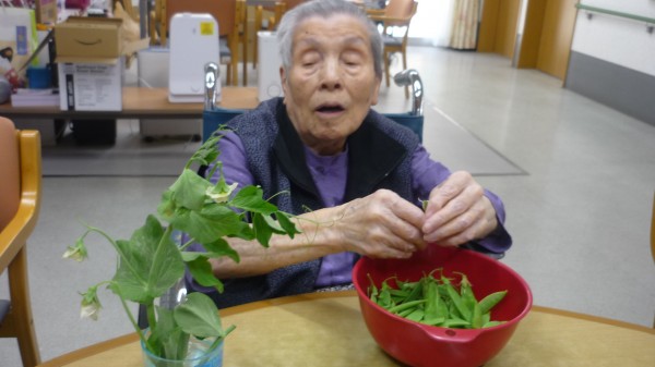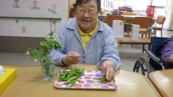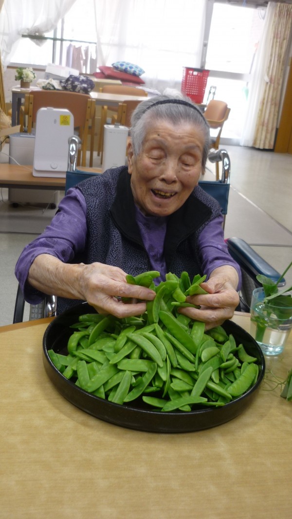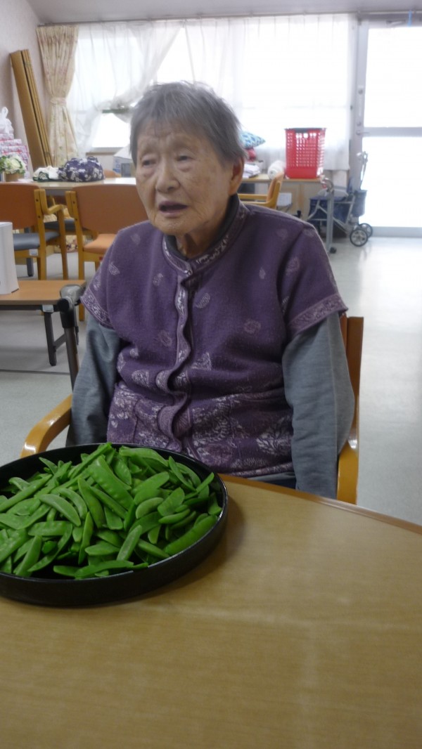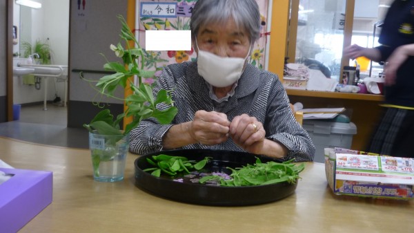 今回は、皆で絹さやえんどうのスジとりを行った様子をお伝え致します。