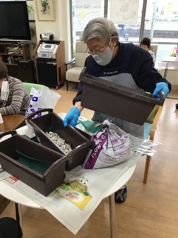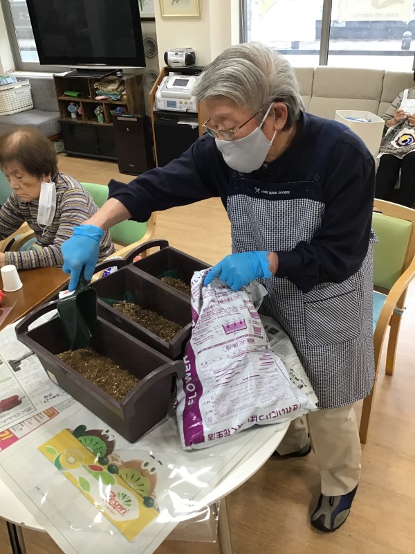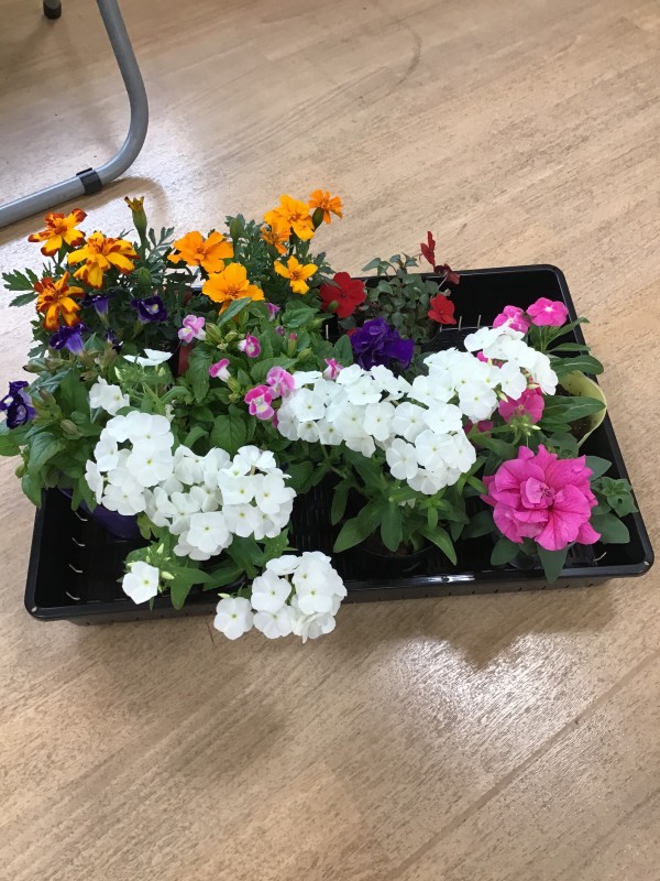 ご利用者様と事前にどんなお花をどう植えて行こうか話し合いをしました。