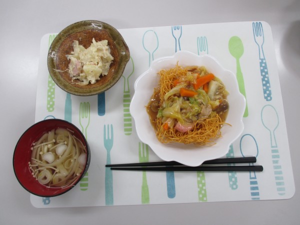 今日のお楽しみメニューは・・・長崎名物皿うどんでーーす。