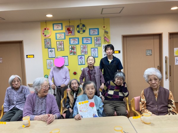 おめでたいことにH様が100歳のお誕生日を迎えられたのでみんなでお祝いをしました。