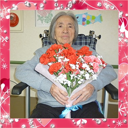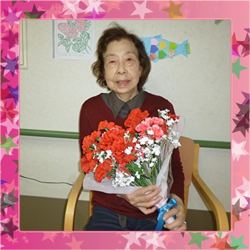 ご家族様からのお花はもちろんですがホームからの花束とケーキも大変喜んで頂きました