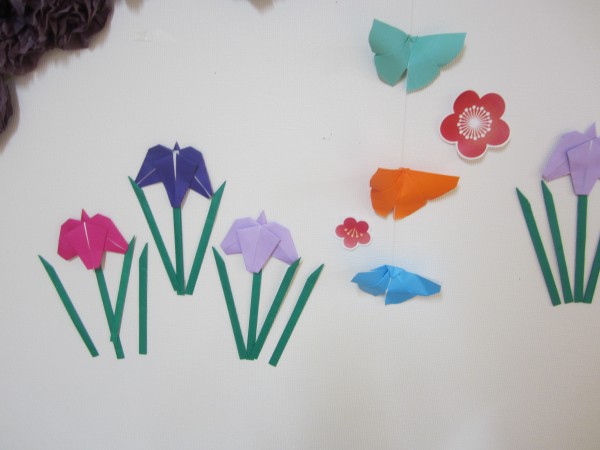 ★☆初夏の花「菖蒲(しょうぶ)」の花折り紙、飾り付けレクリエーション(^^♪☆★