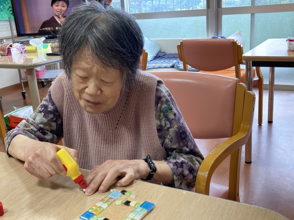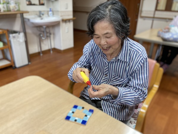 隣の利用者様は「細かいから目がしょぼしょぼしてきちゃった…」と必死に制作中で答えられずにいました(>_<)