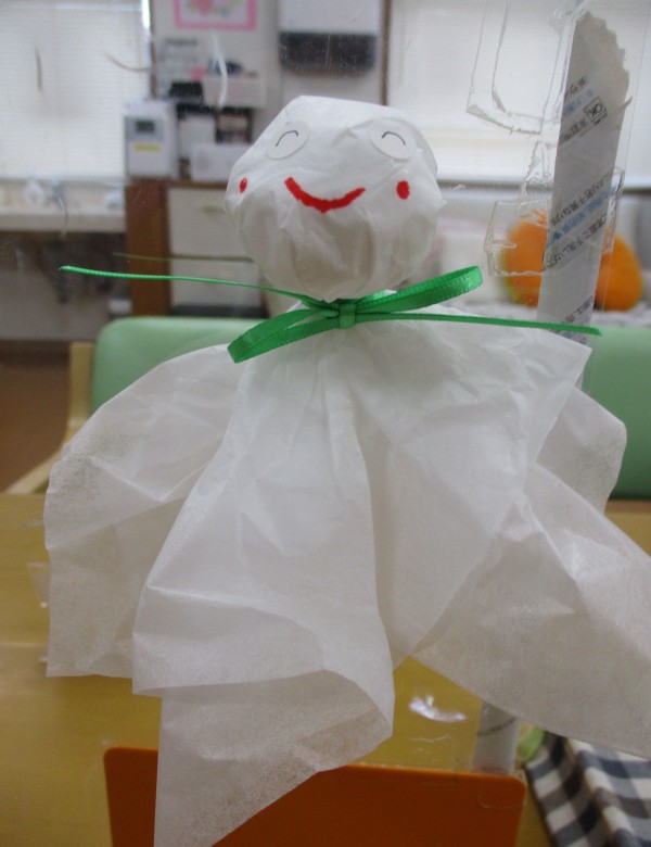 今日は、昼食後の休憩中・・そんなお話から、てるてる坊主を作る事になりました!