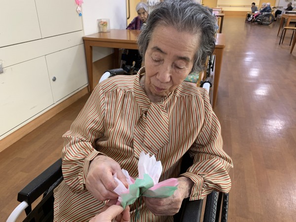 一緒にやってみませんか?と、ご入居者様をお誘いしてみました。