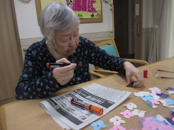 6月の飾りでお花作りを行いました。