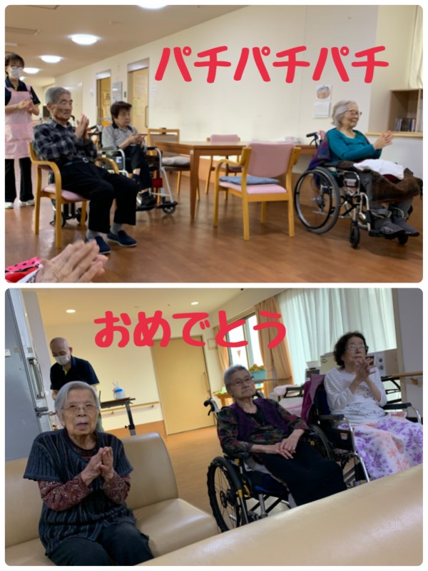 記念写真を撮り、イチゴショートケーキを召し上がっていただきました。