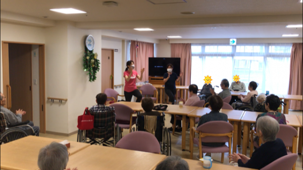 こちらのフロアーでは、職員も一緒に前に立ち先生に教えてもらいながら、皆様に楽しんで頂きましたよ♪