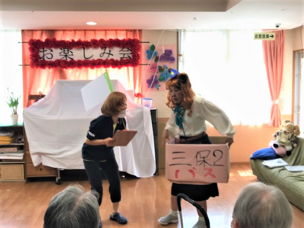 「三保2バスです。今日はこれから旅に出ます」上を指差し「旅ではありません」バスを走らせるポーズをしながら「旅です」と笑いを入れながら…まるで【きみまろ】トーク。