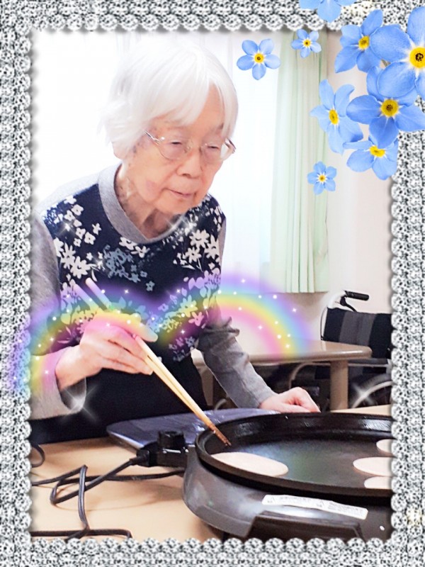 皆様には生地を流したりひっくり返したりお手伝いして頂きました♪