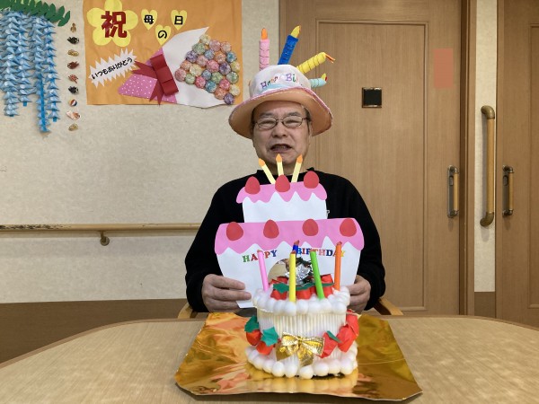 職員の手作りのバースデーカードにとても喜ばれていました。