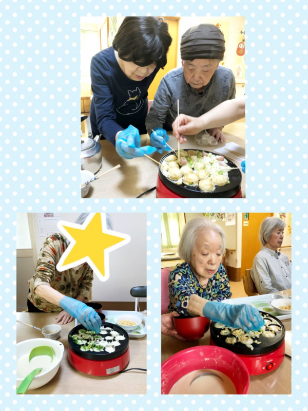 最初にたこ焼きの粉と卵を皆で混ぜて