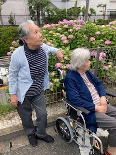 あじさいをバックに記念撮影した時のご様子です。