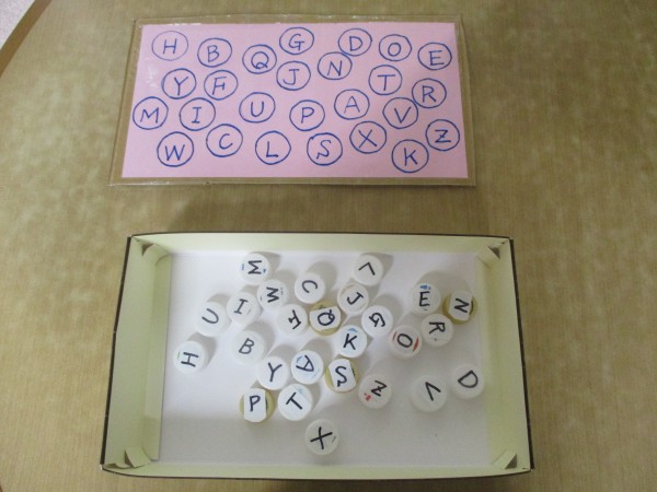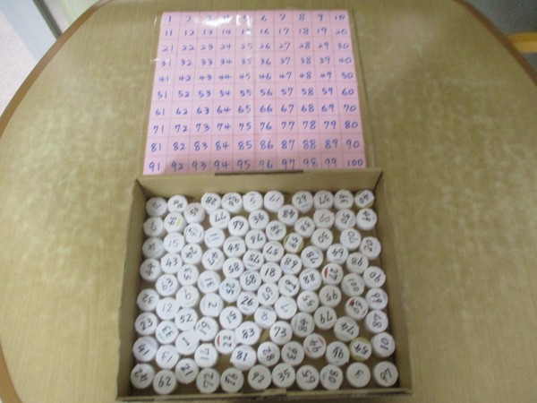 数字が書かれた画用紙の上に、同じ番号のキャップを置いていくという