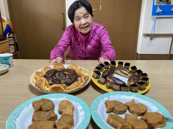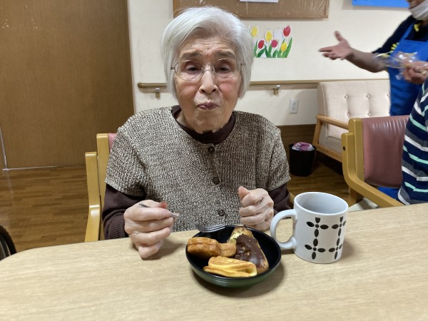 たいやき・エクレア・チョコレートケーキ・ワッフルなどを用意し、紅茶やリンゴジュース、オレンジジュースなどを準備致しました。