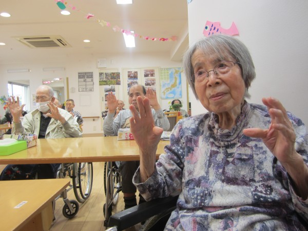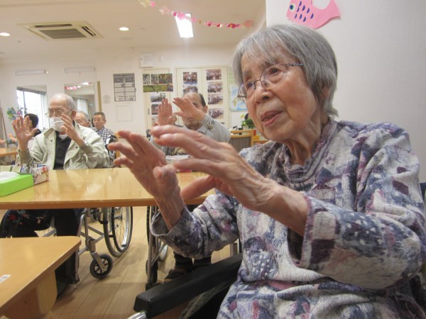 また、拍手や自分のからだに触れたり、ほかの方と手拍子しながら触れ合う動き(ボディパーカッション)では、