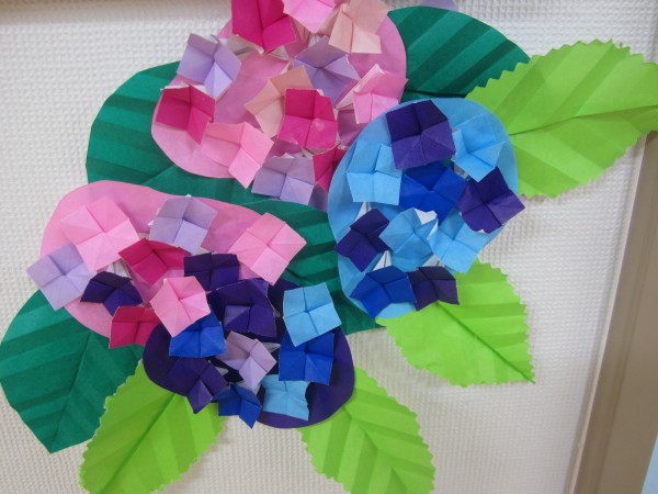 ★☆★☆紫陽花アジサイの折り紙、飾り付けレクリエーション(^^♪