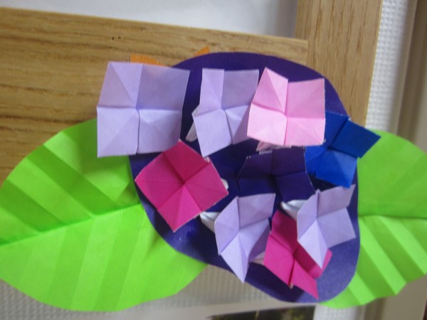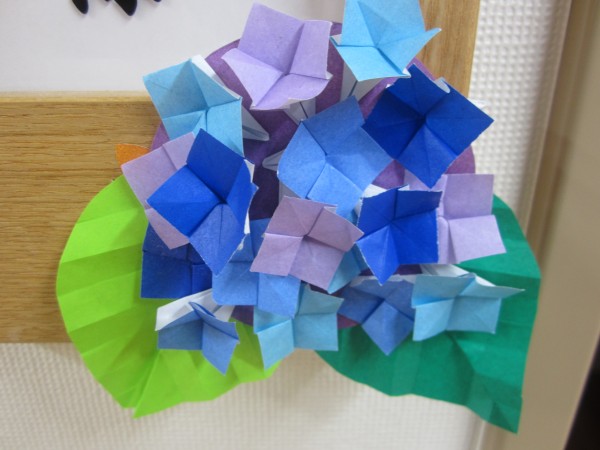 初夏の訪れを感じる紫陽花を、折り紙で作成しました(^^♪