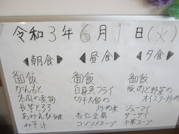 介護付有料老人ホームみんな家三橋6丁目の昼食は令和3年6月1日(火)曜日
