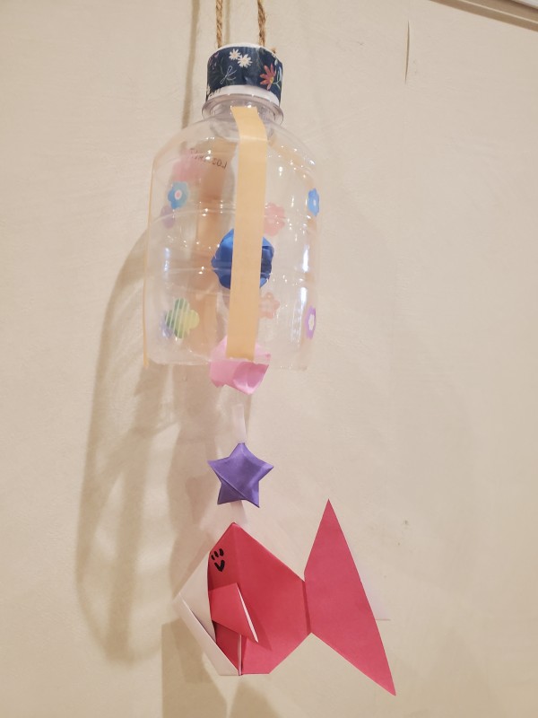 職員のアイディアでペットボトルを使った風鈴を作りました☆☆