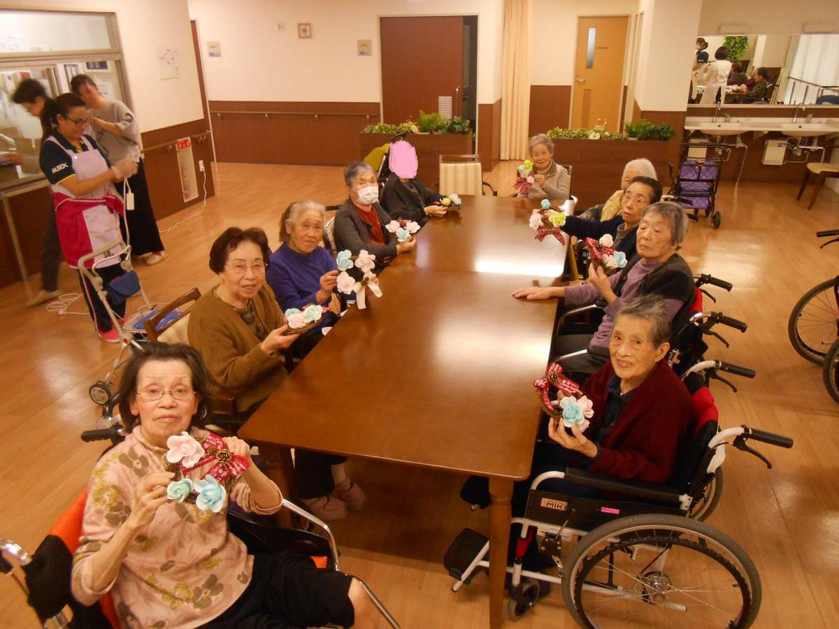 先日、ご利用者の皆様とクリスマスリースを作りました。