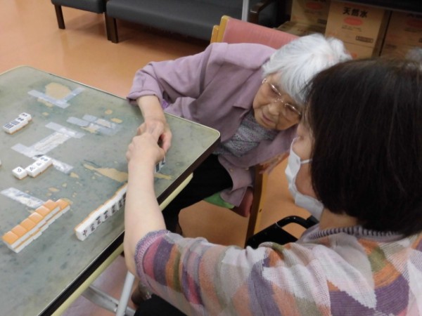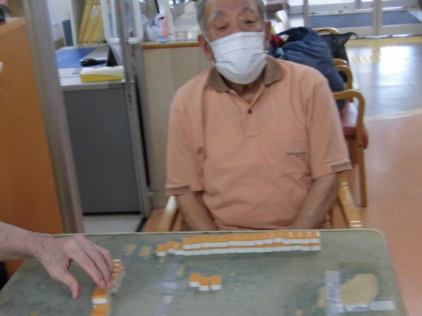 現状でも、週一度のお楽しみでもある麻雀部です。その中でも今回はお試しという形でやってみたいというご利用者様がいらっしゃりましたので、体験ながらの参加となりました。
