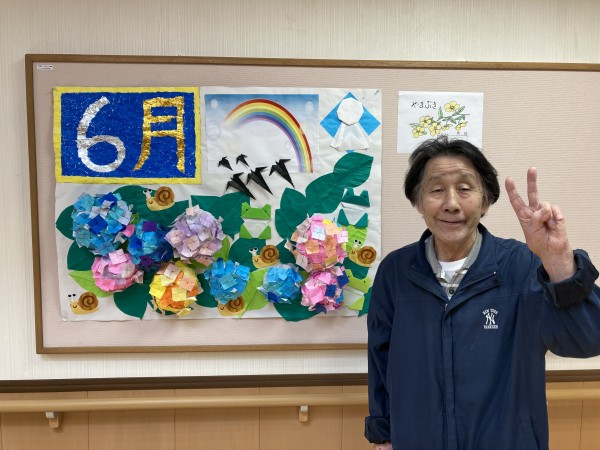 ショートステイでは綺麗なあじさいの工作が完成しました!!!