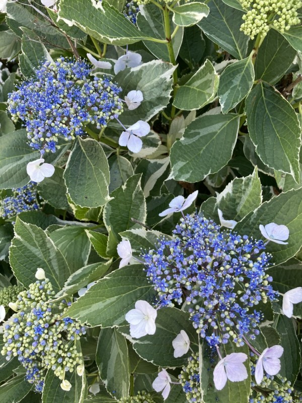 「あ、アジサイ! きれいですね!」こうわたしたちがいうと、「あれはガクアジサイっていうの、きれいね~♪」&「ガクアジサイはね・・・」