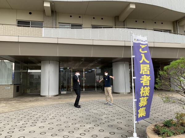 本日は、この、すこや家西尾久がある建物の掲示板のために、やってきてくださった方がいます。