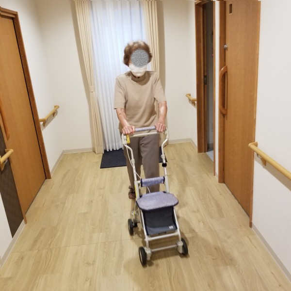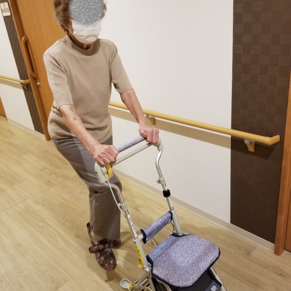 こんにちは。画像のご入居者様は毎日姿勢の改善と歩行能力の維持から自主的に歩行訓練をされています