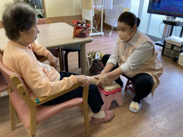 他にも化粧水を用いた顔面療法などもあり顔の表情が明るくなったり、足のマッサージにより足が軽くなり歩行練習を行われ始めたり