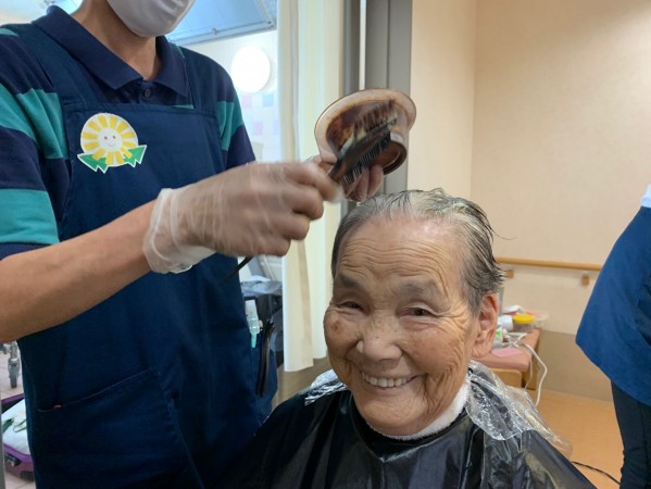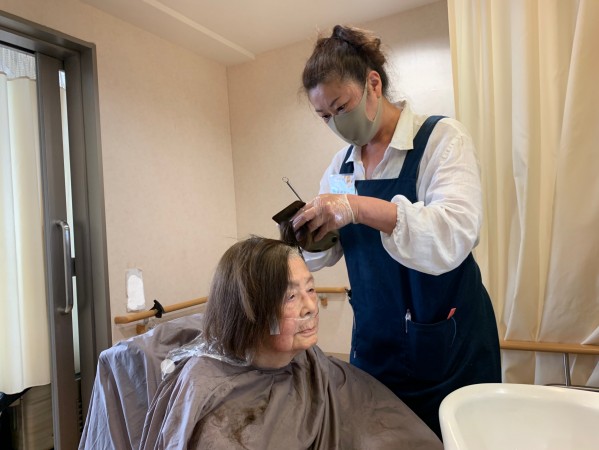 古橋さんは、パーマネントウェーブに向けてシャンプー中です。