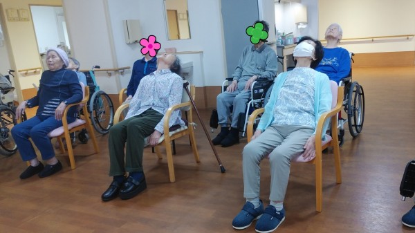 『はい!皆さん、背もたれにゆっくりもたれて良いですよ~』