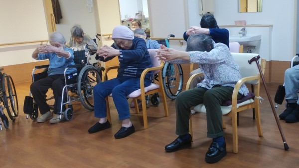 岡庭先生のリモートで『いきいきリズム体操』のクールダウン編です。