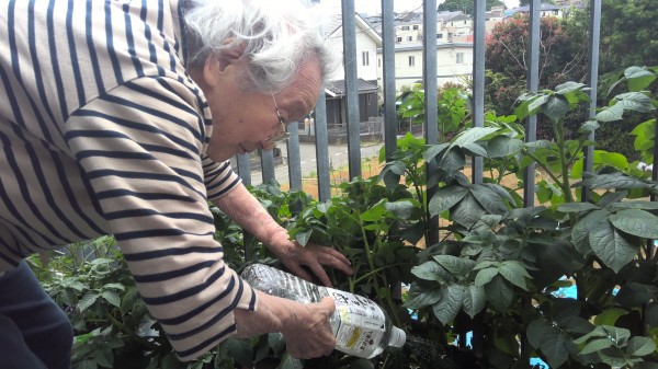 そこで、ご利用者様の皆様と話して、ベランダで家庭菜園をする事にしました。