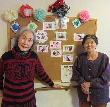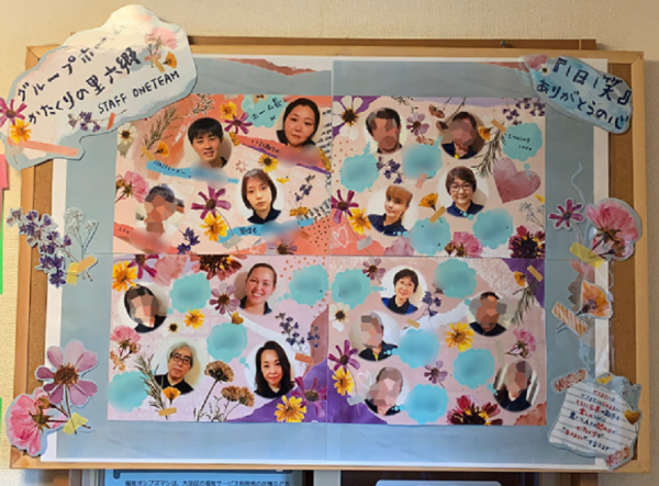 ご入居者様とスタッフが一緒に撮った写真を名前付きで飾って